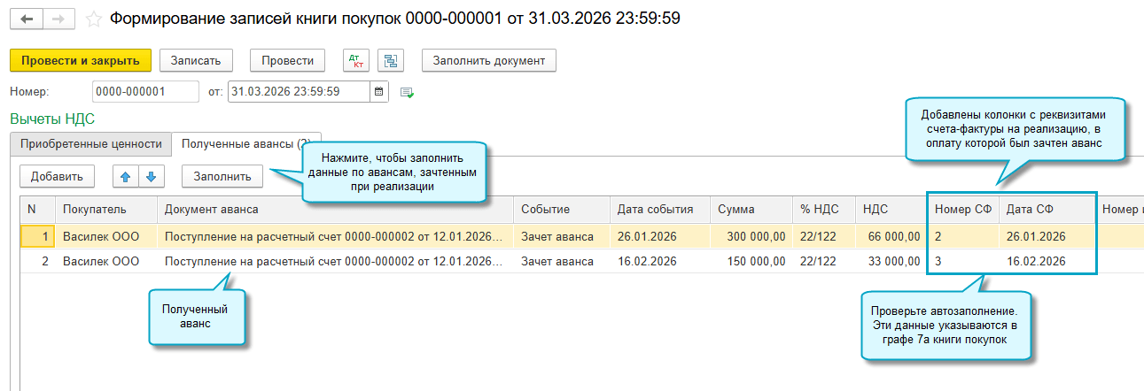 С 01.01.2026 эти графы заполняются у продавца, когда при реализации товаров, работ и услуг зачитывается аванс, ранее полученный от покупателя (Письмо ФНС от 26.12.2025 № СД-4-3/11730@).