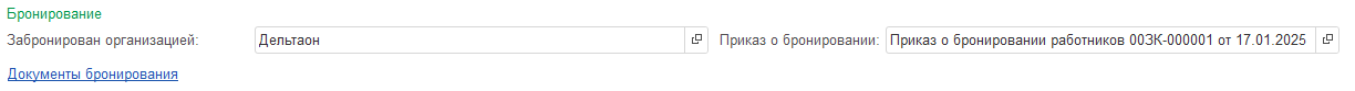 - Добавлено поле «Приказ о бронировании»: