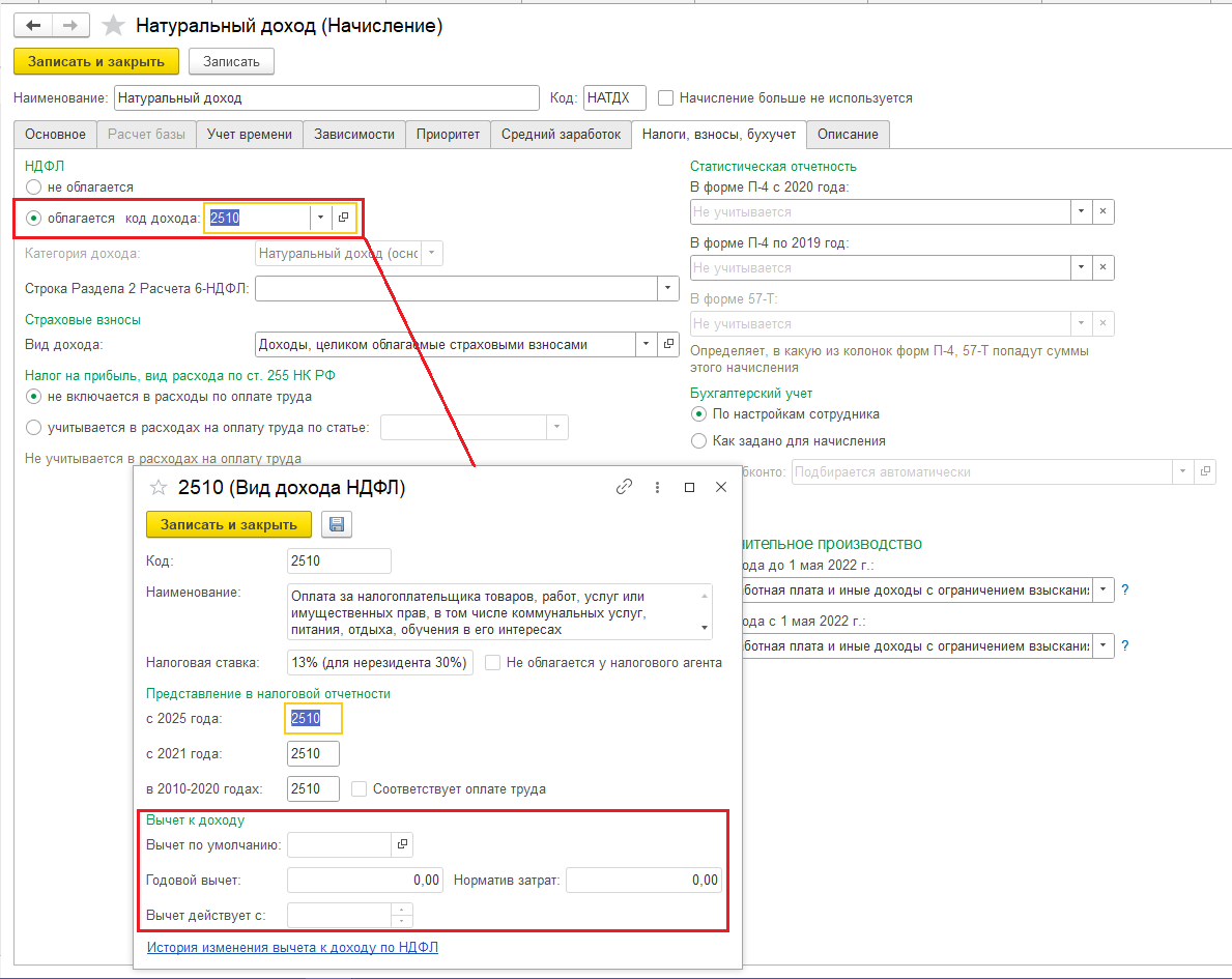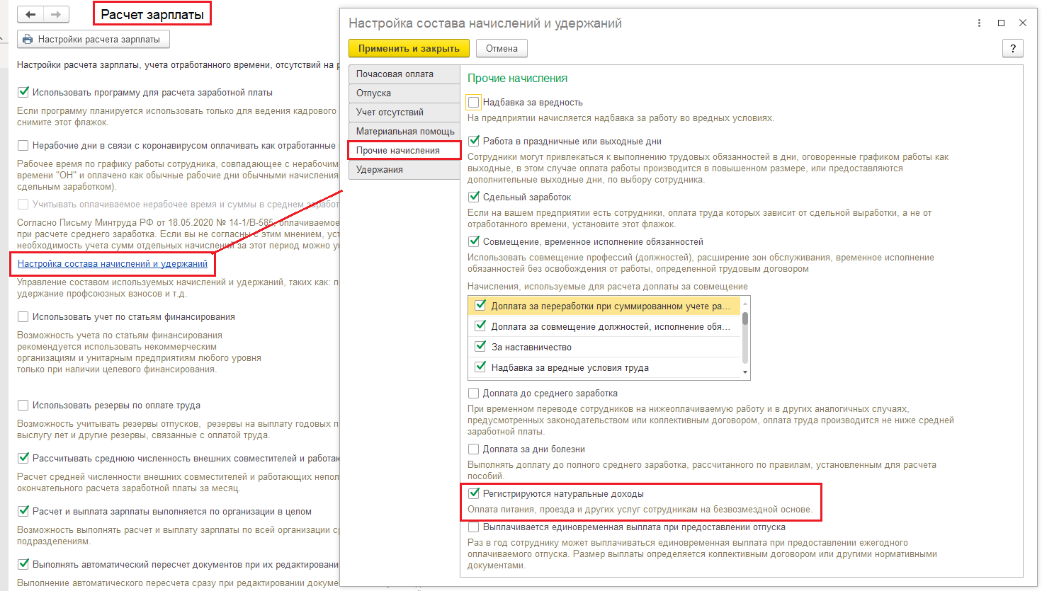 Настройки 1С:ЗУП 3.1 для начисления натурального дохода